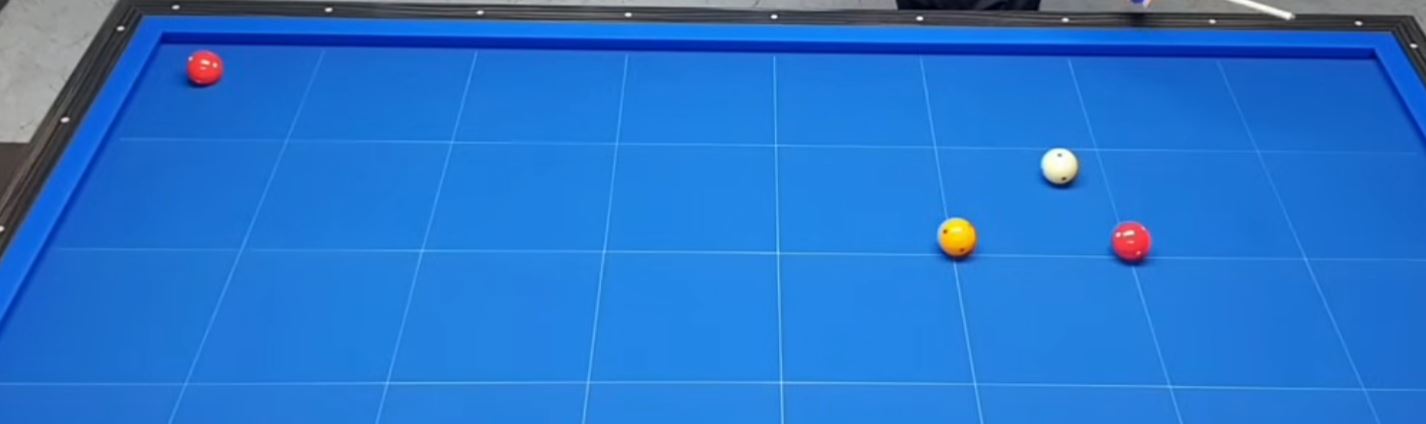 - 스트로크: 짧고부드럽게 톡진다. 수구-제1목적구 거리에 비례하여 큐를 공 한개 또는 반개만큼 짧게 톡친다.