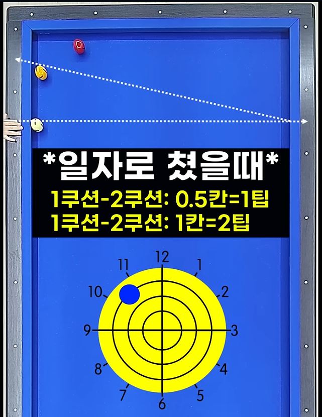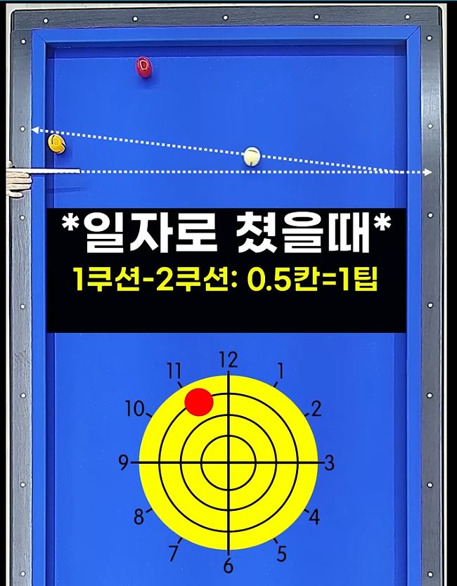1쿠션과 2쿠션이 0.5칸이면 1팁